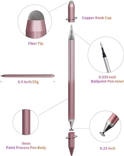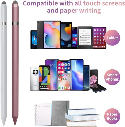 【3 in 1 Stylus Pen】Stylus Pens for touch Screens with three different nibs for a variety of life situations,Transparent disc nibs and fiber nibs for use on the iPad screen help you draw and write better, with the addition of a smooth black ballpoint pen.    【Hidden Disc Tip and Gel Pen】The clear disc nib and gel pen are hidden inside the metal cap to prevent loss and damage, the stylus pen for iphone made of piano-painted metal material, solid, durable, stylist pens has a comfortable grip and easy to hold, work like a real pen on your hand!    【Stylus Easy to Use】The ipad stylus does not need to be charged and linked to bluetooth to use, remove the cap and enjoy this creative stylus, you can use it on the tablet as well as paper to indulge your creativity as well as inspiration.    【High-Precision Sensing Technology】Equipped with advanced sensing technology, the touch screen stylus pens accurately captures and transfers every movement, Whether it's rapid note-taking, detailed sketching, or handwritten annotations, it effortlessly meets your demands.    【Widely Compatible Application】Stylus is universally compatible with all capacitive cell phones, tablets, touch screen laptops & PC, e-Reders, such as Apple iPad/ iPhone/ iPod/ Tablet/ Galaxy & more.