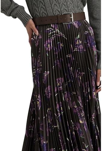 Turn heads with this LAUREN Ralph Lauren Floral Pleated Satin Charmeuse Skirt. The effervescent sunburst pleats and glossy satin charmeuse combine to form this statement-making midi skirt, which is updated with the season's painterly floral motif. Th 60% recycled polyester, 40% polyester. Hand wash only.