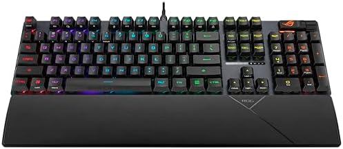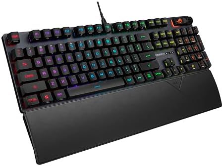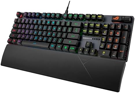 ASUS ROG Strix Scope II Gaming Keyboard, pre-lubed ROG RX Red Linear Optical switches, Sound-dampening Foam, PBT doubleshot keycaps, Streaming hotkeys, Multi-Function Controls, Wrist Rest