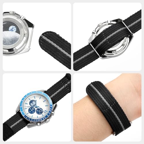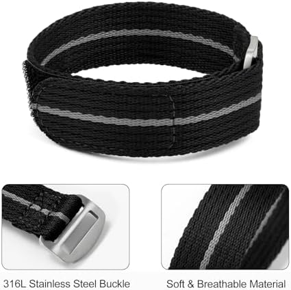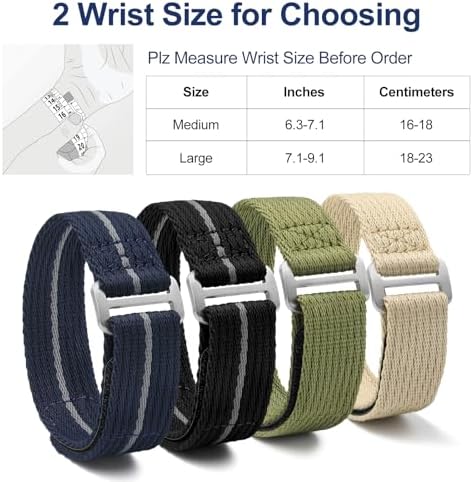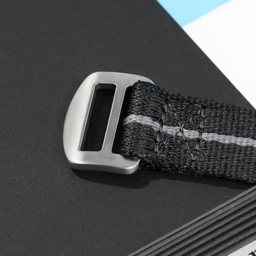 Classic Quick Release Watch Band: The one piece fasten release nylon watch strap is in a classic style, solid color or strip color available, meets all you needs in any occasions. And it fits 6.3 inches - 7.1 inches ( 16-18 cm ) wrist. Premium Material: The watch strap is made of high quality woven nylon materials, 316L stainless steel buckle. It can be weared either in wet or hot weather, softable breathable for all ocassions, such as work, casual, sport, and outdoor activities. Select Right Size: 20mm and 22mm width is availble. Measure the dial interface of the watch with ruler, then choose the strap with the same width. If your watch has an odd lug width, choose 1mm larger than measured is recommended. The Strap is soft to fits it. Rugged & Anti-slip Designed: The nylon watch band is designed with a loop and hook fastener closure to enhance its strength, tough and wear-resistant, you can easy to adjust the band to fit your wrist, not easy to fall off. Easy Installation: Package comes with spring bars removing tools. Remove your existing strap, thread the new strap band through the raw ear at the top ends. Then, pass through the clasp after adjust the right position. #104,230 in Clothing, Shoes & Jewelry ( ) #140 in