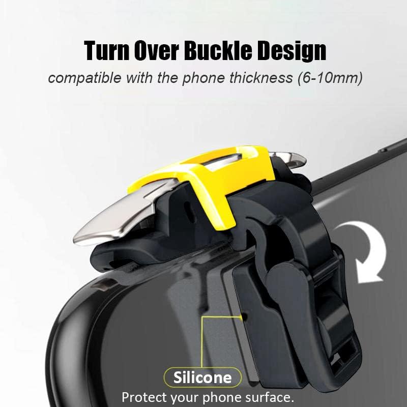 【Using Tips】These M9 Mobile Game controllers are using the sensitive real mouse micro switch inside. So there are several phones which have the electromagnetic problems. This will cause the triggers touch the screen automatically. Please do not worry about this and you just need to turn off the screen and turn on again. This issue will solved right away.    【Perfect Compatibility】These M9 Mobile Game controllers are compatible with iPhone, iPad and most Android Phones, without even remove your case.(The thickness of the compatible mobile phone should be less than 10mm.) These 4-fingers-operation mobile game controllers are suitable for a variety of shooting games, including PUBG, Call of Duty, Fortnite, Knives Out, Rules of Survival, Survivor Royale, Critical Ops etc. As long as the game allows customizing and draging the keys.    【Small and Lightweight】The PUBG game triggers are portable and tiny for you to put them into your pocket, and have them for gaming when in office, school, trip, camping and play games anywhere and anytime. With the 6 trigger PUBG mobile controller, you can simultaneously move, turn, aim and shoot by using the index fingers to press the buttons, which can eliminate the trouble that use thumbs only to make all operations.    【Mechanical Touch】2 triggers PUBG mobile controller designed for longevity with greater durability and responsiveness, more than 2 million click. Fast mechanical keys with medium resistance, precise actuation, audible click sound, and tactile bump feedback. Easy To Use, High Sensitive, Physical Button Feedback. Using this PUBG mobile game controller, you can move, angle adjust, aim and shoot at the same time with the thumbs and index fingers of the left and right hand.    【Super Gaming Experience】This PUBG game triggers is made of ABS and alloy, durable and ergonomic. 6 trigger PUBG mobile controller electroplated alloy materials, mouse buttons, smooth touch, six-finger linkage, auxiliary pressure grab, one-second burst, dominate the game battlefield, and enjoy the ultimate gaming experience. Call of Duty mobile controller are sensitive to shoot and aim, no Power supply and driver needed, easy to use and high precision, increase your game score!    【High Sensitive】100% brand new. With copper fiber covered, finger sleeves for gaming ensures your every touch is accurate and effective. More sensitive than silver fiber.    【Sweat-Absorbent & Breathable】High-quality copper fiber mobile gaming sleeves is lightweight, breathable and has good sweat absorbing ability. They allow you to separate your thumb with the touch screen, fast sweat kick-away and fast dry.    【13 in 1 Combo Kits】Blow is all the contents you will receive: 2pcs L1R1 Controllers/9pcs Finger Gloves/1pc Keychain/1pc Storage Case. You can tidy all these gaming accessories into carrying case and bring them with you tidyly and easily.