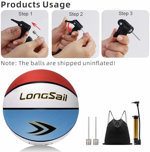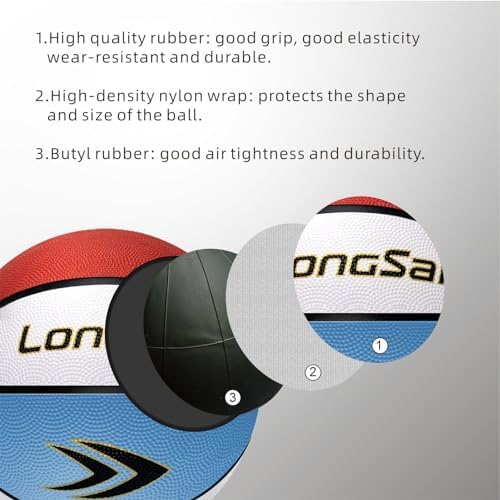 ?【BUID to LAST】 Crafted from premium-grade rubber, this basketball is not only environmentally friendly but also free from any unpleasant odors. Its high-quality construction ensures minimal deformation, color fading, or discoloration. ?【OFFICIAL SIZE】29.5" Size 7 basketballs are ideal for 12+ teenagers and adult men& women players, meeting official game standards. We have also designed women's basketball/ girl's basketball in color schemes, which make ideal Christmas choices. ?【STRICT CHOICE of MATERIAL】Our basketballs are made of premium eco-friendly rubber that resists deformation and fading. Each Longsail basketball undergoes rigorous impact testing to ensure excellent durability. ?【SUPERIOR AIR RETENTION and BOUNCE】With a leak-proof air valve, about 500 denier nylon winding tire, ensuring exceptional air retention, deformation resistance. With impressive bounce performance, they enhance shooting, jumping, and passing crossovers, or delivering precise passes. ?【EXCELLENT GRIP】Featuring a deep groove structure and heightened rib design, our basketball balls offer enhanced ball handling capabilities. This innovative design facilitates easier ball grip, providing superior touch and control.