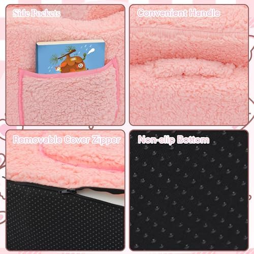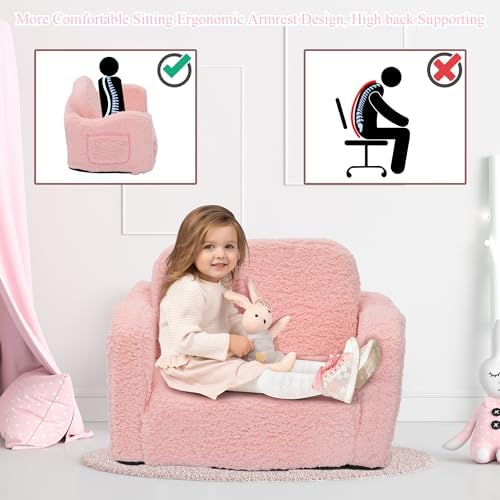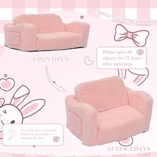 ?【Cozy and Supportive】Made with sherpa fabric and high-density foam, this kids’ sofa offers a comfortable seating experience while providing strong support for growing bodies. The kids couch texture of the sherpa fabric and the ample cushioning make it a perfect spot for kids to relax, read, or watch TV.    ⭐【Convenient and Practical】With two side pockets and a non-slip bottom, this sofa is perfect for kids to store their favorite toys, books, or snacks. The non-slip bottom ensures that the sofa stays securely in place during playtime, providing a sense of stability and safety for your child. Kids folding chair sofa cover can be removable with zipper, easy to clean with washing machine.    ?【Easy to Use and Store】 This folding sofa is designed for convenience. It can be easily folded and unfolded, making it perfect for any space. Whether it's in a playroom, bedroom, or living room, this sofa can be easily set up and stored away when not in use, saving space and adding flexibility to your home.    ?【Perfect Gift for Boys and Girls】 Ideal for children of all ages, this sofa adds a touch of style to any room while encouraging imaginative play. It's the perfect gift for birthdays, holidays, or any special occasion. The neutral design makes it suitable for both boys and girls, and its durability ensures that it can withstand years of use.    ?【Fosters Independence】The kids' sofa is the perfect size for children to climb on and off by themselves, fostering independence and confidence. It allows them to have their own space, whether it's for reading, playing, or watching TV, giving them a sense of ownership and promoting self-reliance.