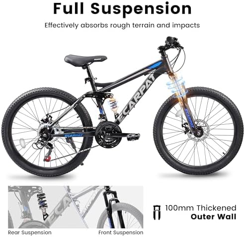 Ecarpat Mountain Bike 24/26/27.5 Inch, Front/Full Dual Suspension Mountain Bike, 21-Speed, Disc/V-Brake Steel Frame, Mens Womens Trail Commuter City Bicycles