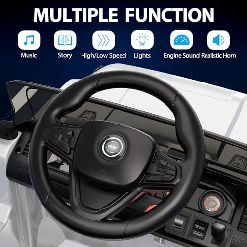Jojoka 12V Ride on Truck Car, Kids Electric Car with Remote Control, Spring Suspensions, 3 Speeds, LED Lights, Music, MP3, Ride on Toy for Boys Girls, White