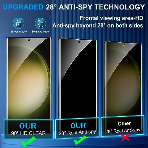 Hendlent [2+2 Pack] Galaxy S23 Ultra Privacy Screen Protector, 9H Tempered Glass, Ultrasonic Fingerprint Support, 3D Curved, HD Clear Anti-Spy Film for Samsung S23 Ultra 5G Glass Screen Protector